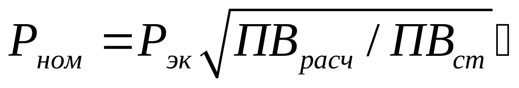 В случае различия между фактическим (расчетным) и стандартным значениями ПВ% производят пересчет мощности двигателя Рном применительно к ближайшей стандартной ПВст