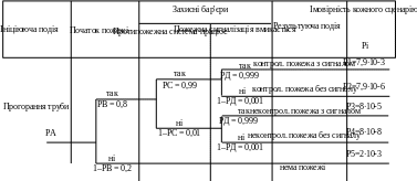 I. Побудувати можливі сценарії розвитку подій в машинному відділенні (дерево подій). Визначити імовірність всіх можливих кінцевих подій і імовірність найбільш небезпечного сценарію.