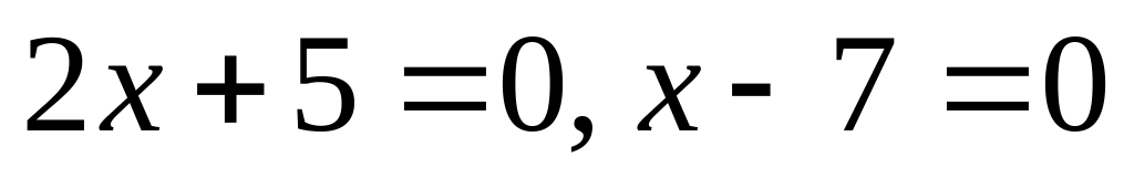 1. Приравняем нулю выражения, стоящие