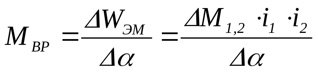 Бұл механизмдерде L1 және L2 индуктивтігі қозғалмалы бөліктің бұрылу бұрышына тәуелді емес, сондықтан WЭМ электромагниттік энергиясының туындысының ауытқу бұрышы қатынасына тең айналдырушы момент: