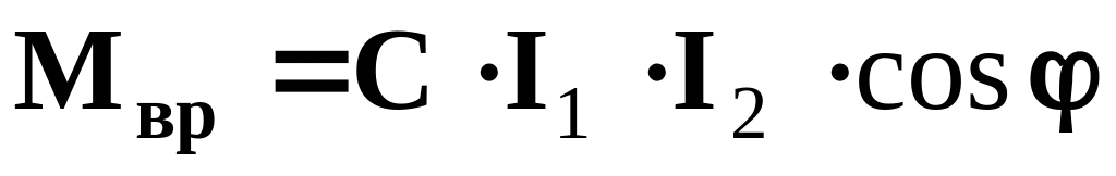 Бұл формулада I1 тогын В1 индукциясына ауыстырамыз, өйткені олар тура пропорцанал. I1 тогы мен В1 индукция арасындағы жылжу бұрышы өте аз болғандықтан, айналу моментінің формуласы келесідей болады: