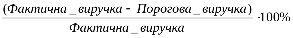Маржинальний запас міцності (маржа безпеки) – це відхилення фактичної виручки від продажу продукції від порогової виручки (порогу рентабельності).