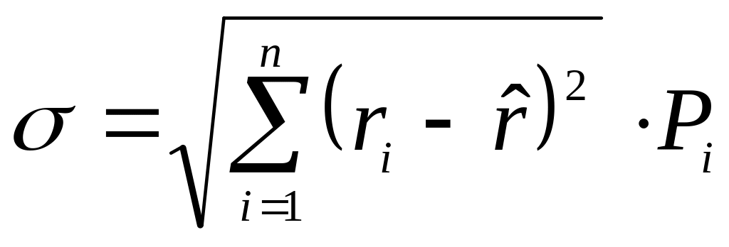 Стандартне відхилення й коефіцієнт варіації показника рентабельності інвестицій рекомендується розраховувати за наступними формулами: