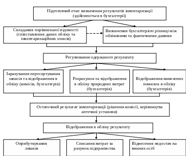 Послідовність визначення, регулювання та відображення результатів інвентаризаційного процесу можна представити у вигляді схеми (рисунок 2. 11).