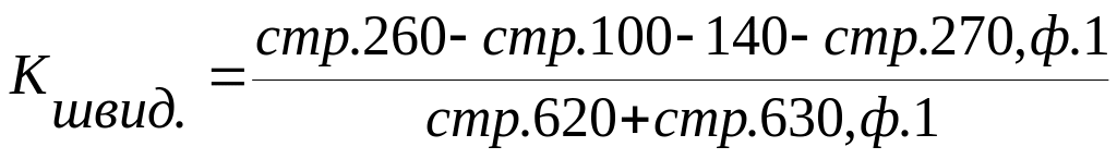 Коефіцієнт швидкої ліквідності визначається по наступній формулі: