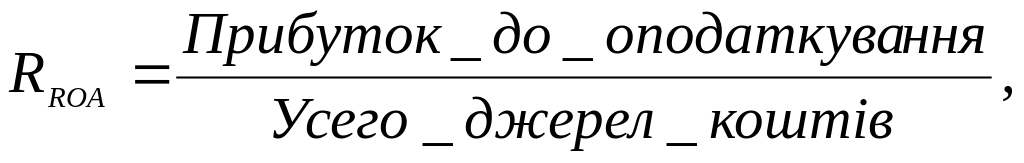 Показник рентабельності активів характеризує наскільки ефективне підприємство використовує свої активи для одержання прибутку, тобто який прибуток приносить кожна одиниця коштів, вкладених в активи підприємства. Він розраховується таким чином: