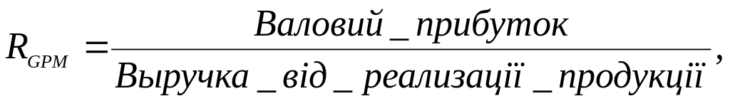Валова рентабельність продаж показує ефективність виробничої діяльності і політики ціноутворення, що проводиться на підприємстві. Він розраховується таким чином: