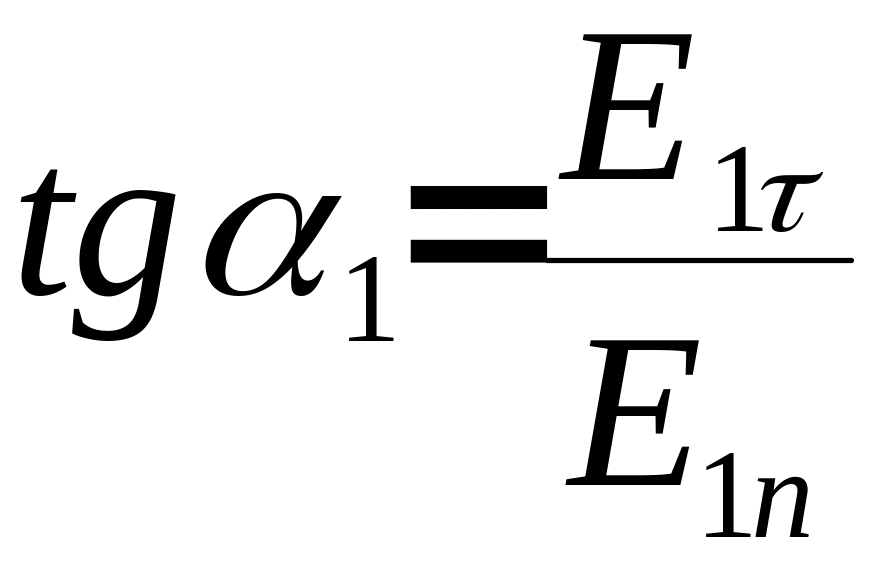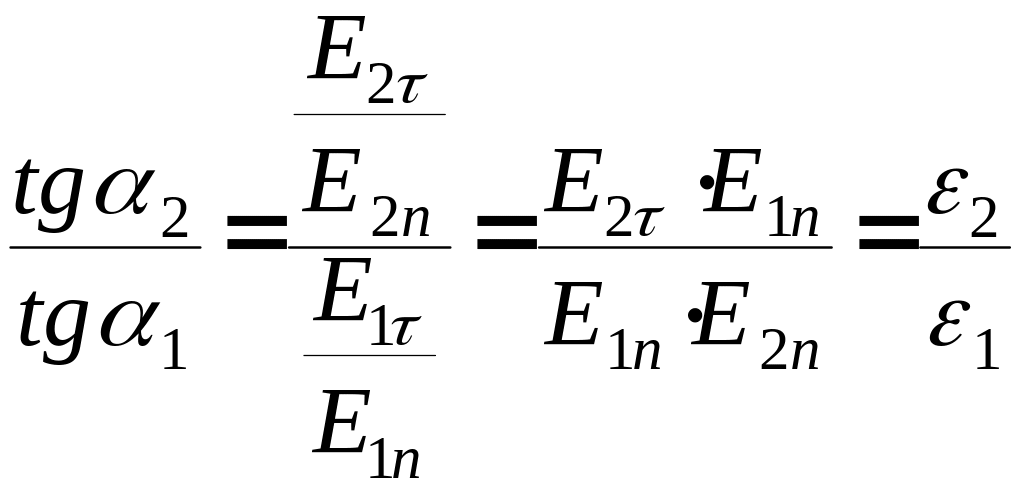 Из этих условий следует, что линии векторов и на границе диэлектриков испытывают излом