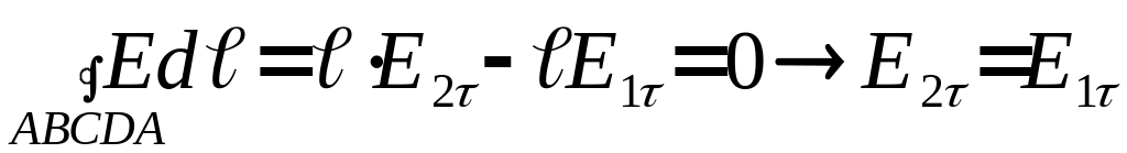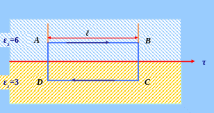 Рис.3.7.Циркуляция вектора Е на границе двух диэлектриков