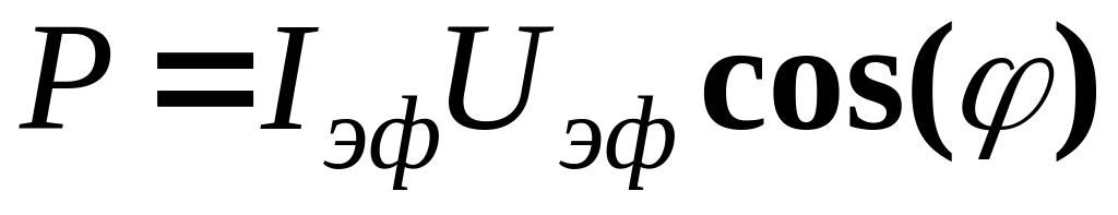 Мощность, потребляемая в цепи переменного тока, равна произведению эффективного тока и эффективного напряжения лишь тогда, когда подключен только резистор и напряжение с током изменяются в одной фазе. В противном случае средняя мощность будет