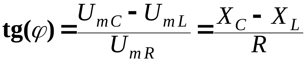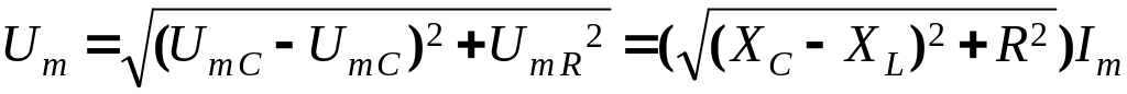 Поскольку между напряжениями на катушке, конденсаторе и резисторе имеется сдвиг по фазе, то результирующую амплитуду напряжения можно определить, используя векторную диаграмму сложения колебаний одинаковой частоты (рис. 11.4.4).