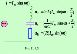 т.е. совпадает по фазе с током в цепи (рис.11.4.3).