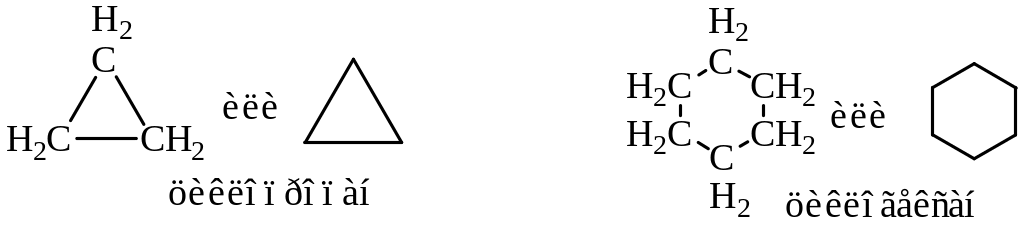 Циклоалканами называются предельные углеводороды, содержащие замкнутые циклы из атомов углерода с общей формулой CnH2n, где n ≥ 3. К названию алкана прибавляется приставка цикло-.