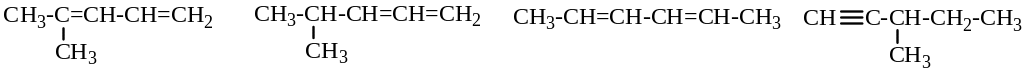 В ненасыщенных углеводородах структурная изомерия обусловлена не только изомерией углеводородной цепи, но и положением двойной или тройной связи. Структурные изомеры: