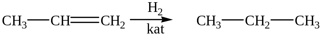 - •Как и в случае алкенов реакция идет в присутствии катализаторов (Pt, Pd, Ni и др.) и может быть остановлена на стадии образования алкена.