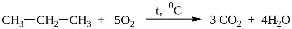 При высоких температурах алканы сгорают с выделением тепла до двуокиси углерода и воды. На этой реакции основано использование алканов в качестве топлива.