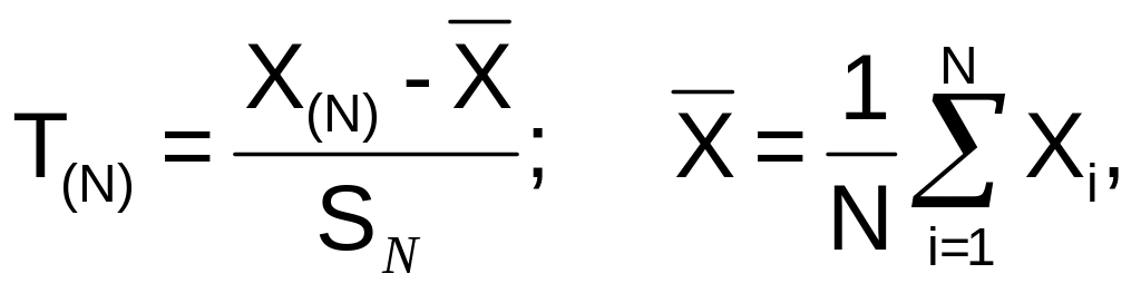 При використанні критерію Смірнова – Граббса обчислюється Т статистика:
