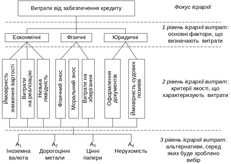 Щодо витрат від забезпечення кредиту, то кожний із факторів застосовує такі критерії оцінювання означених альтернатив:
