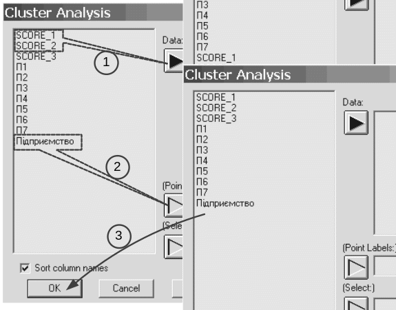 у вікні Cluster Analysis підсвітить мишкою «Підприємство» та натисніть кнопку Point Labels « »;