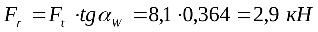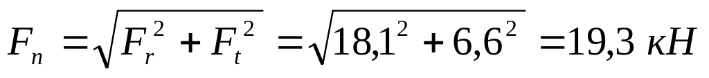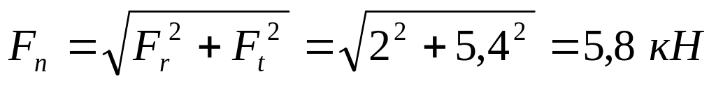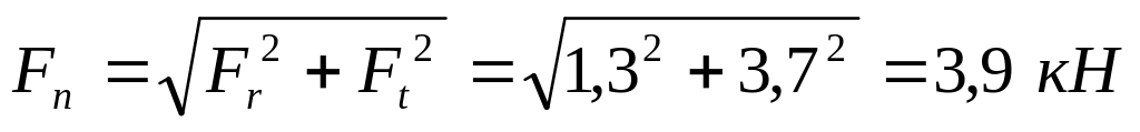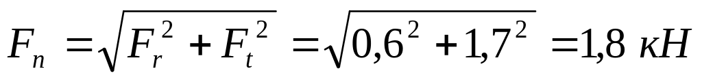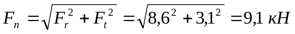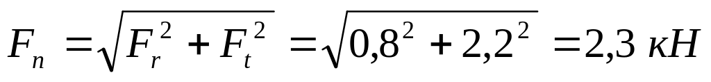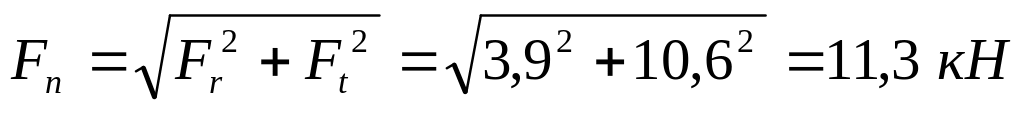 Радиальная и нормальная нагрузки при известной окружной силе определяются также, как и в простых задачах. Радиальная сила: