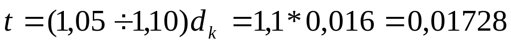 и по формуле находим толщину стенки: