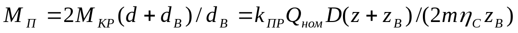 Крутящий момент на барабане при подъеме лебедки будет равен: