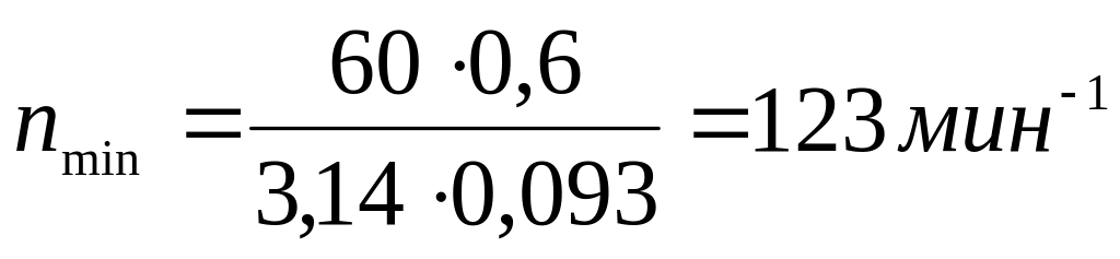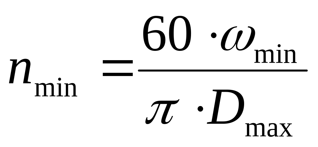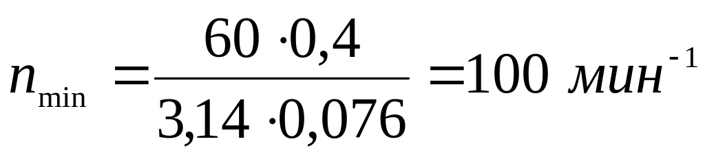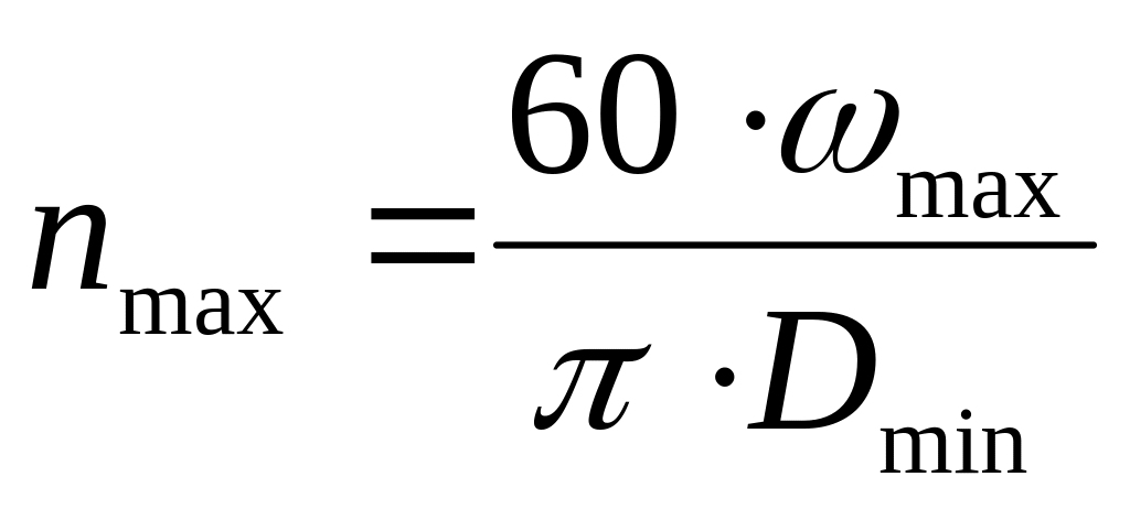 где Dmax максимальный диаметр породоразрушающего инструмента, nmin - минимальное значение частоты вращения.