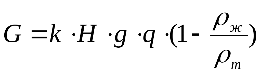 где G - вес бурильной колонны, Pпри - осевая нагрузка на породоразрушающий инструмент.