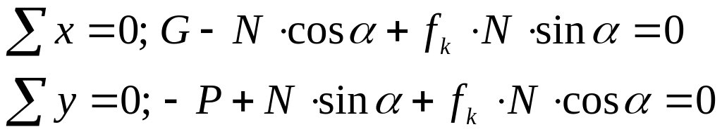 Условие равновесия обоймы: