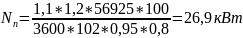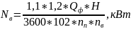 Потужність електродвигуна для приводу припливної вентиляції визначається за формулою: