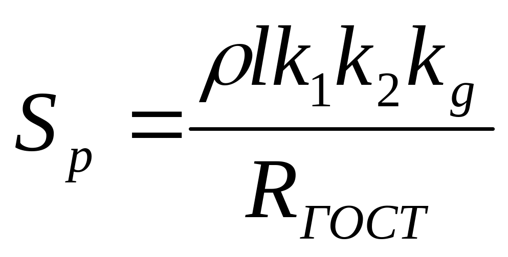 Rгост - максимально допустимое сопротивление жил кабеля заданного номинального сечения (ГОСТ 22483-77), Ом/м.