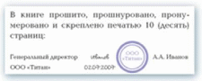 В случае отсутствия возможности скрепить книгу сургучной печатью концы шнуровки на последней странице можно проклеить листом бумаги, содержащим следующую надпись: