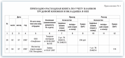 1) приходно-расходную книгу по учету бланков трудовой книжки и вкладыша в нее;