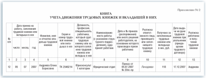 2) книгу учета движения трудовых книжек и вкладышей в них.