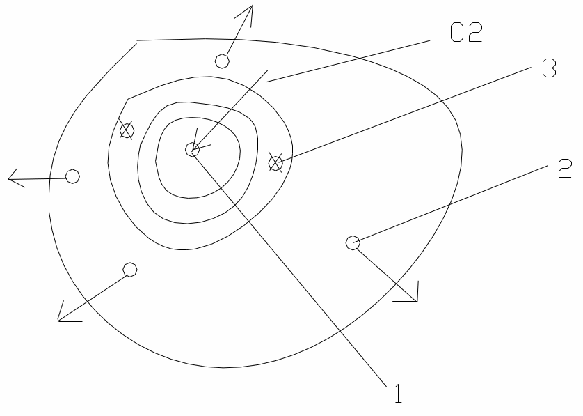 1 – нагнетательные скважины, 2- добывающие скважины, 3 – скважины индикаторы.