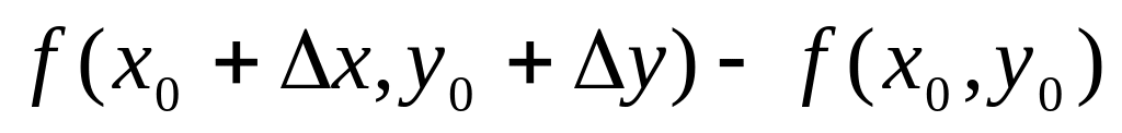 Какой вид имеет полное приращение функции f(x,y) в точке ?