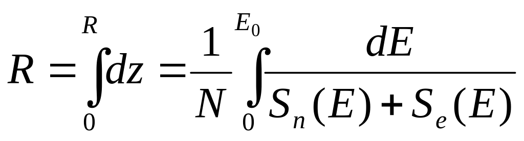 Пробег ионов определяется взаимодействием ионов, как с электронами, так и ядрами. Однако, рассматривая радиационные повреждения, следует учитывать только столкновения с атомами или ядрами мишени, т.к. лишь в этом случае атомам мишени передается достаточное количество энергии.