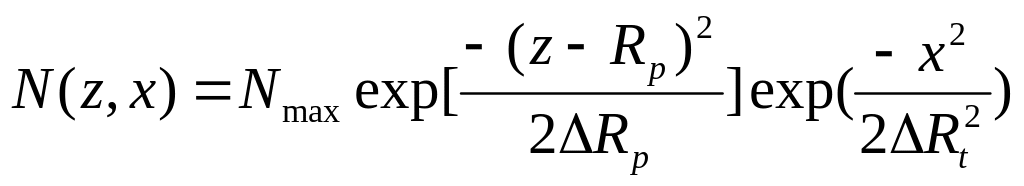 Распределение ионов в мишени описывается функцией Гаусса как в z, так и x направлениях (см. рис.8.2)