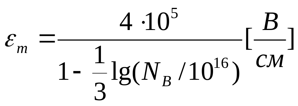 где NB - концентрация ионизированной примеси в слаболегированной области, εs - диэлектрическая проницаемость полупроводника, а - градиент концентрации примеси, εm - максимальное электрическое поле.