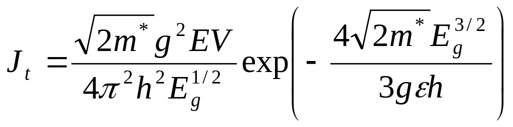 где ε - электрическое поле в переходе, Eg - ширина запрещенной зоны, V - приложенное напряжение, m* - эффективная масса носителя.