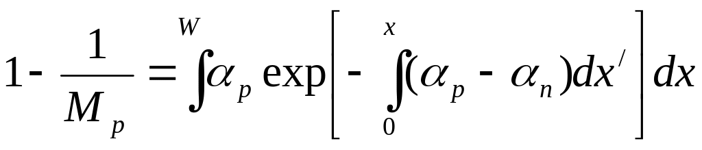 Для полупроводников с равными коэффициентами ионизации (n=p=), например для GaР, интегралы (21.8) и (21.9) принимают вид