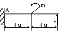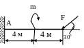 0510. Определить величины опорных реакций жестко закреплённой балки XА, YА и момент МА, если на неё действуют сила F = 2000 H и сосредоточенный момент m =2000 Hм.