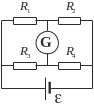 а рисунке E=2 В, R1=60 Ом, R2=40 Ом, R3=R4=20 Ом и RG=100 Ом. Определить (в мА) силу тока I, протекающего через гальванометр.