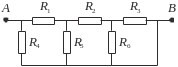 пределить общее сопротивление между точками A и B цепи, представленной на рисунке, если R1=1 Ом, R2=3 Ом, R3=R4=R6=2 Ом, R5=4 Ом.