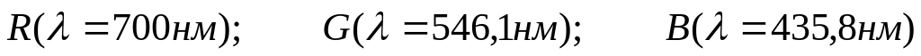 Определить цветовой охват трех монохроматических излучений :