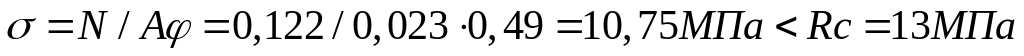 Приймаємо переріз бруса bh=150×175 та перевіряємо його міцність на стиск з прогином.