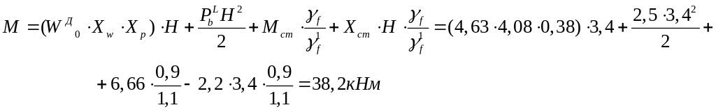 а) поздовжня сила N = Fn + Fcm + Fв.в.=60,2 + 29,6 + 0,94 = 90,74 кН .