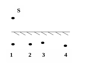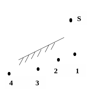 А2. На рисунке показан источник света S и плоское зеркало. Изображение источника обозначено цифрой….. Выберите правильный ответ и поясните ответ 1) 1 2) 2 3) 3 4) 4 (1 балл) |