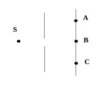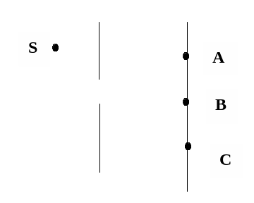 А1. Источник света S освещает отверстие. Размеры отверстия велики. Источником света будет освещена точка….. Выберите правильный ответ и поясните ответ 1) А 2) В 3) С 4) все точки (1 балл) |
