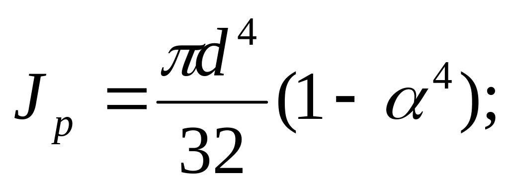 При равных площадях поперечного сечения кольцевое сечение обладает большими полярными моментами инерции и сопротивления, чем сплошное, т.е. вал кольцевого сечения оказывается жестче и прочнее. Наконец, при равной прочности и равной жесткости, т.е. при одинаковых значениях Wр или Jр , полый вал получается легче сплошного.